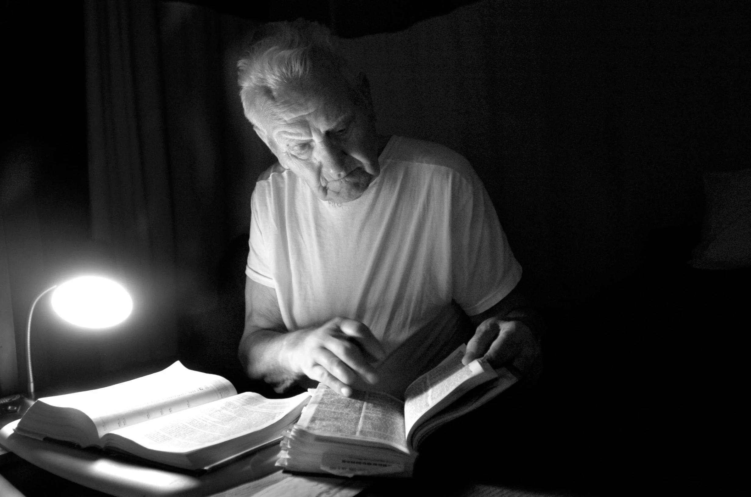 Rudy used to wake up at 2 o'clock in the morning every day and read the bible. He told me that the ritual was important to him, so I knew I needed to photograph it. However I had a slight problem. I was a 25-year-old who was keeping fairly late hours at that point, and I couldn't figure out if I should photograph the 2 am bible reading before I went to bed or after I woke up. I tried it both ways. I much preferred the super early morning to the sober late night. (Most of my late nights at that point were not sober.)