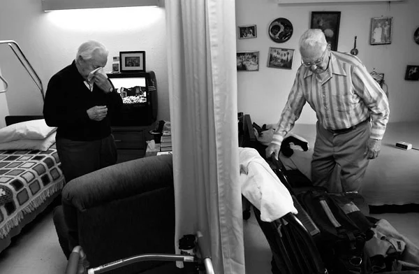 Rudy’s room was a pretty small space that was split in two by a hospital curtain and shared with gentleman named Andy. Andy kept very different hours from Rudy and so getting them into the same photo ended up taking a while. Andy would sleep most of the day and occasionally walk the halls of the Veterans Home at night. Rudy was pretty much the opposite.